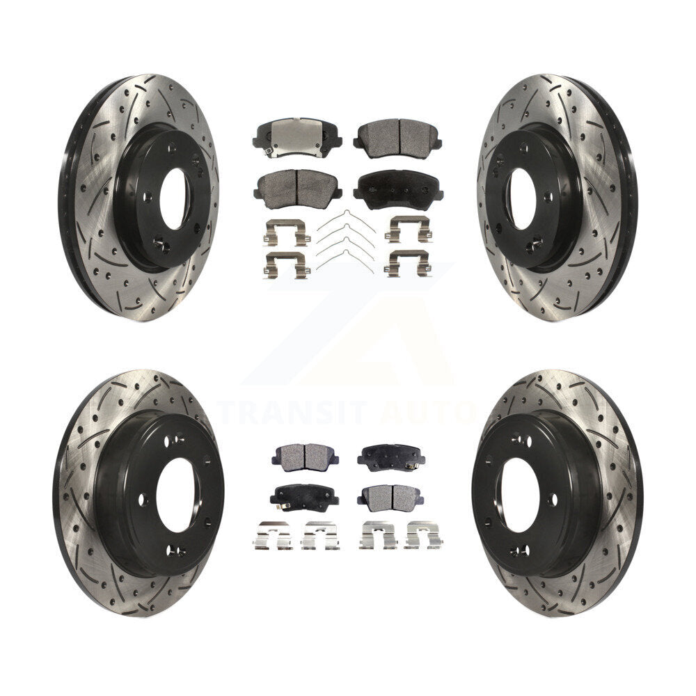 Front Rear Coated Drilled Slotted Disc Brake Rotors And Semi-Metallic Pads Kit For Kia Forte Hyundai Elantra GT Forte5 Koup KDF-100363