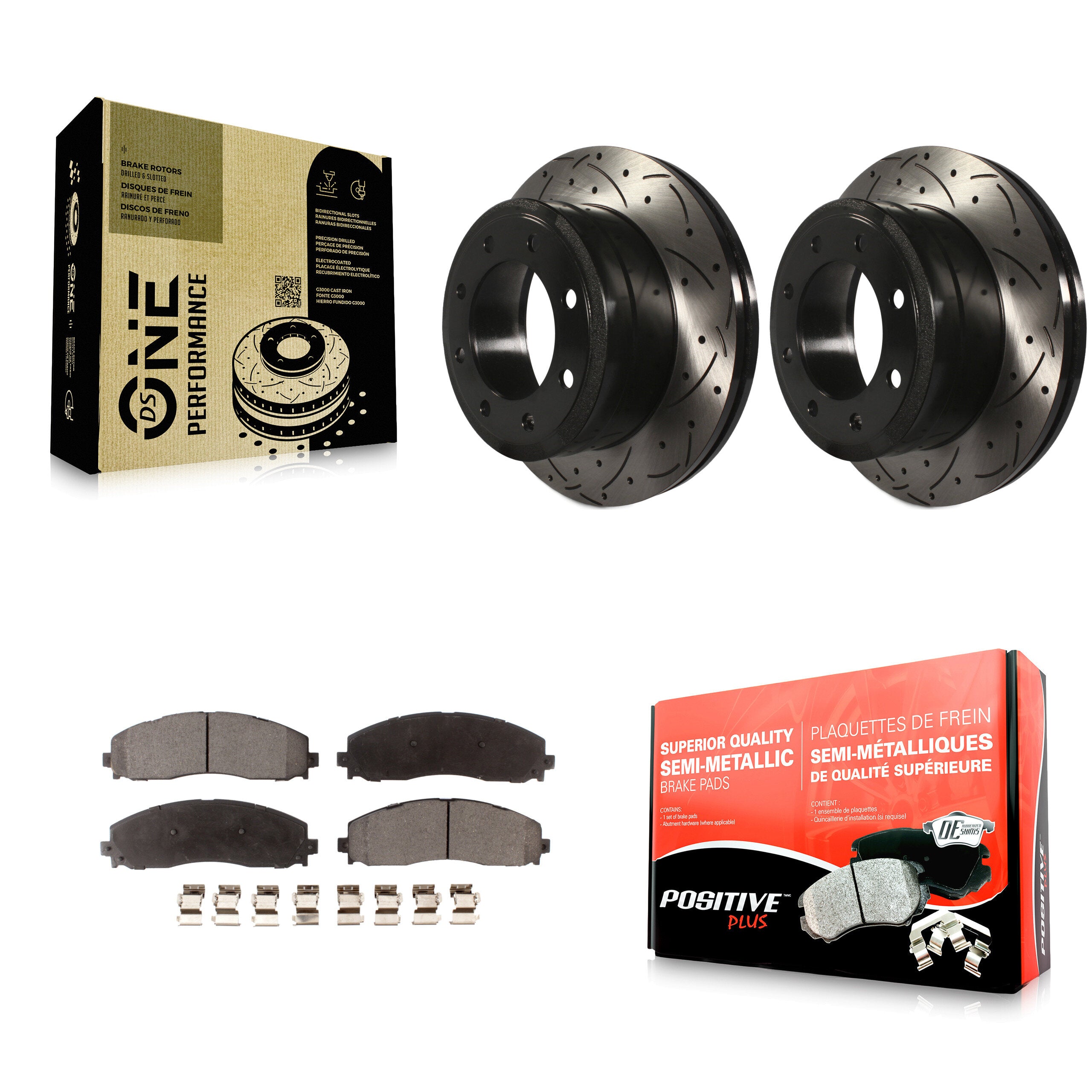 Rear Coated Drilled Slotted Disc Brake Rotors And Semi-Metallic Pads Kit For Ford F-250 Super Duty F-350 KDF-100453