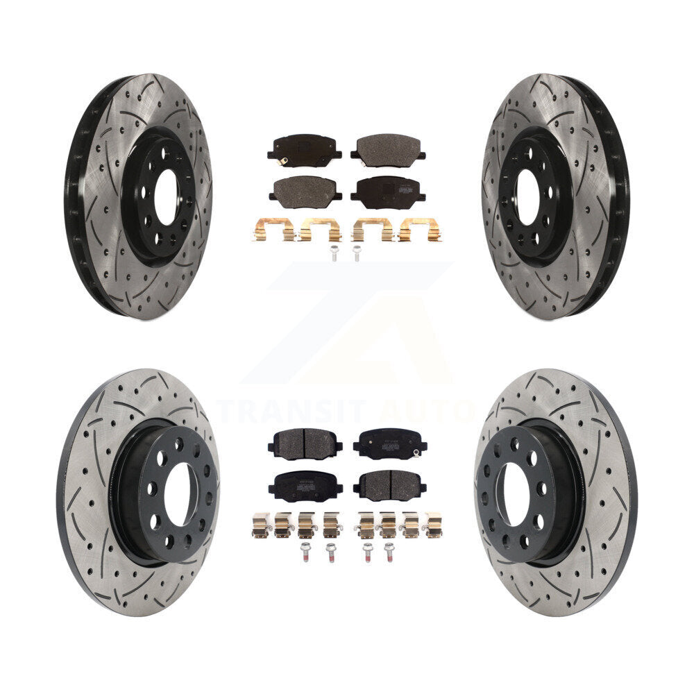 Front Rear Coated Drilled Slotted Disc Brake Rotors And Semi-Metallic Pads Kit For Jeep Renegade Fiat 500X KDF-100569