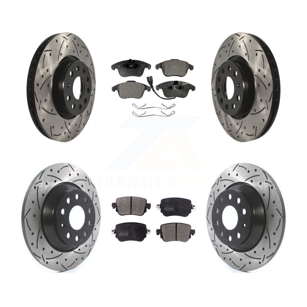 Front Rear Coated Drilled Slotted Disc Brake Rotors And Semi-Metallic Pads Kit For 2016-2018 Audi Q3 Quattro KDF-100573