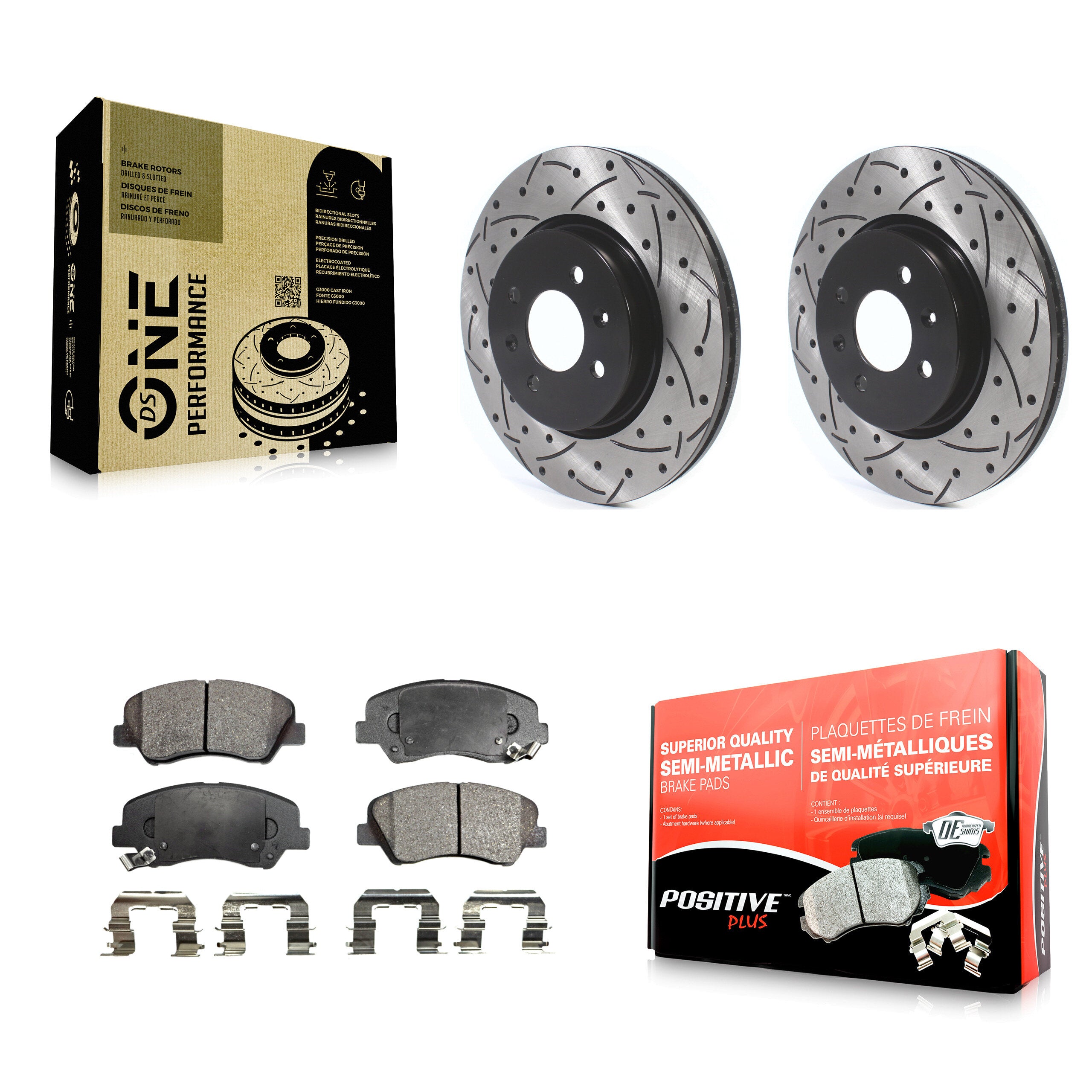 Front Coated Drilled Slotted Disc Brake Rotors And Semi-Metallic Pads Kit For Kia Rio KDF-100623