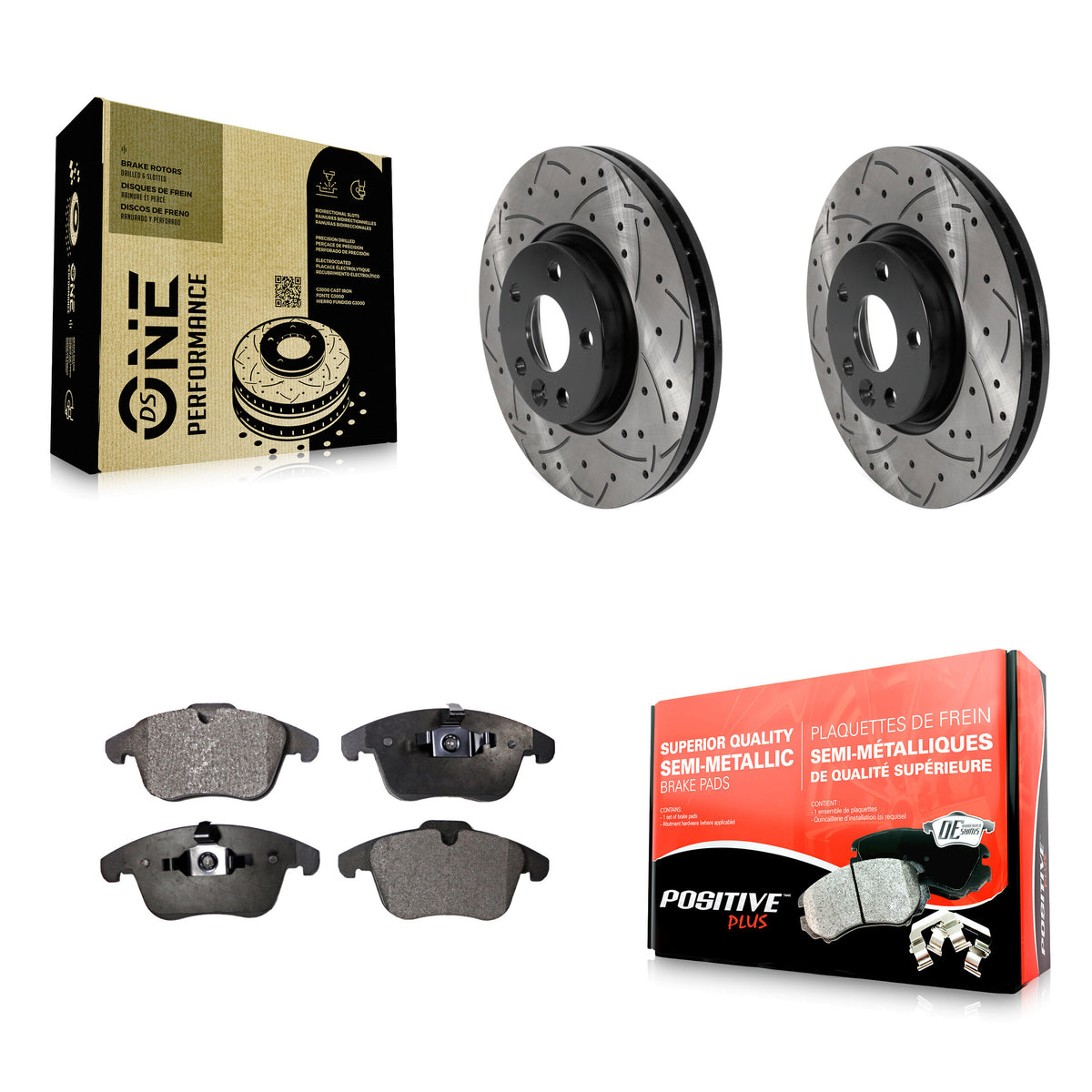 Front Coated Drilled Slotted Disc Brake Rotors And Semi-Metallic Pads Kit For Volvo S60 XC70 S80 Land Rover Range Evoque V60 V70 KDF-100764