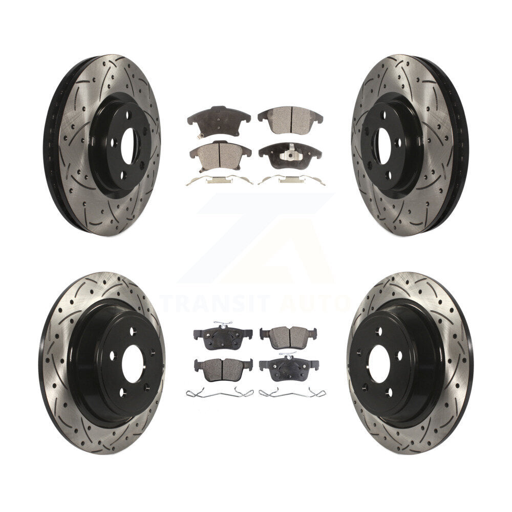 Front Rear Coated Drilled Slotted Disc Brake Rotors And Semi-Metallic Pads Kit For 2019-2020 Ford Police Responder Hybrid SSV Plug-In KDF-101080