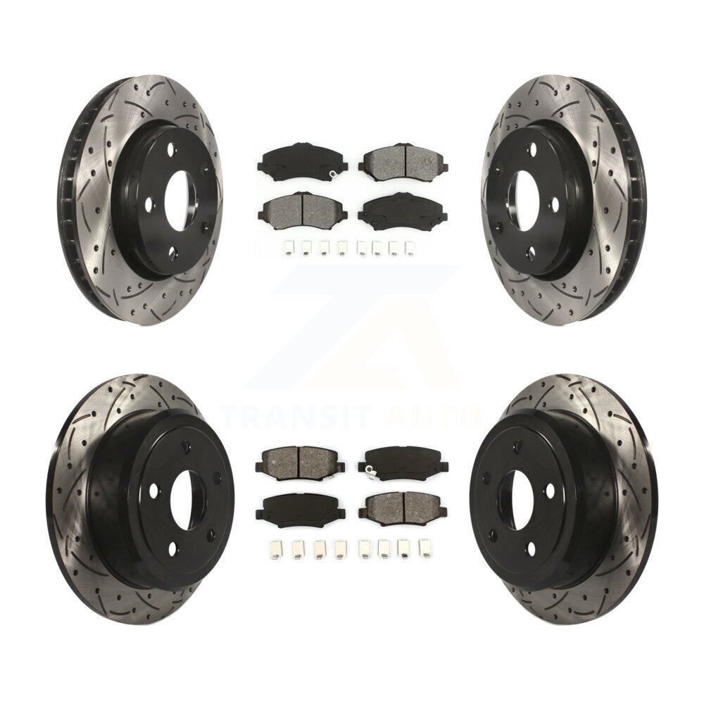 Front Rear Coated Drilled Slotted Disc Brake Rotors And Semi-Metallic Pads Kit For Jeep Wrangler JK KDS-100238