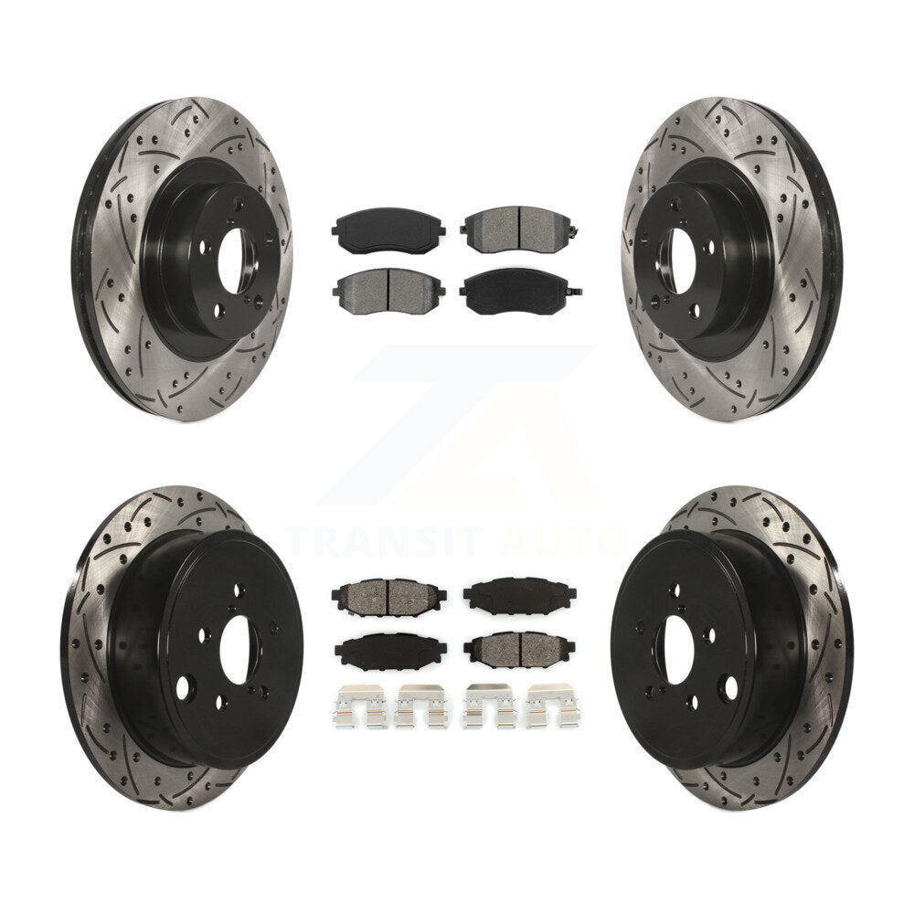 Front Rear Coated Drilled Slotted Disc Brake Rotors And Semi-Metallic Pads Kit For Subaru Outback Forester Impreza Legacy KDS-100267