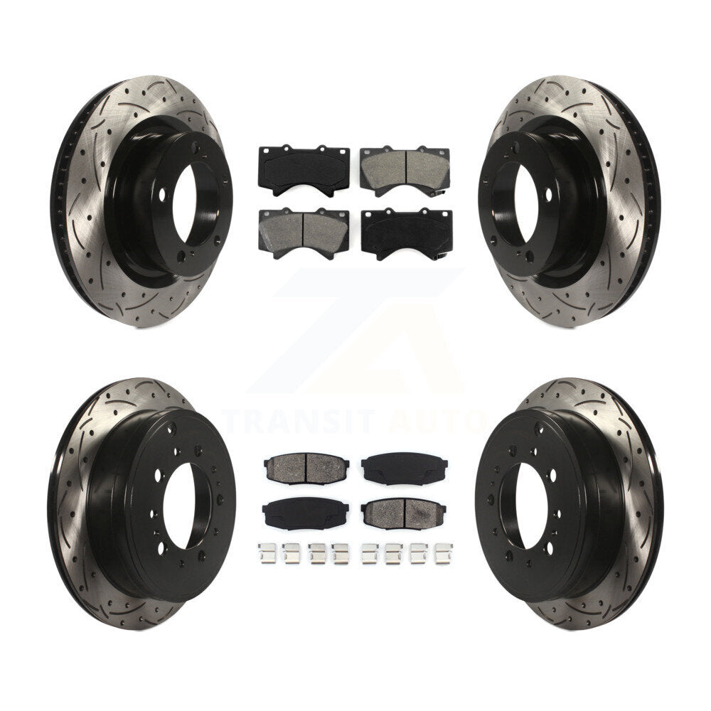 Front Rear Coated Drilled Slotted Disc Brake Rotors And Semi-Metallic Pads Kit For Toyota Tundra Sequoia Lexus LX570 Land Cruiser KDS-100299
