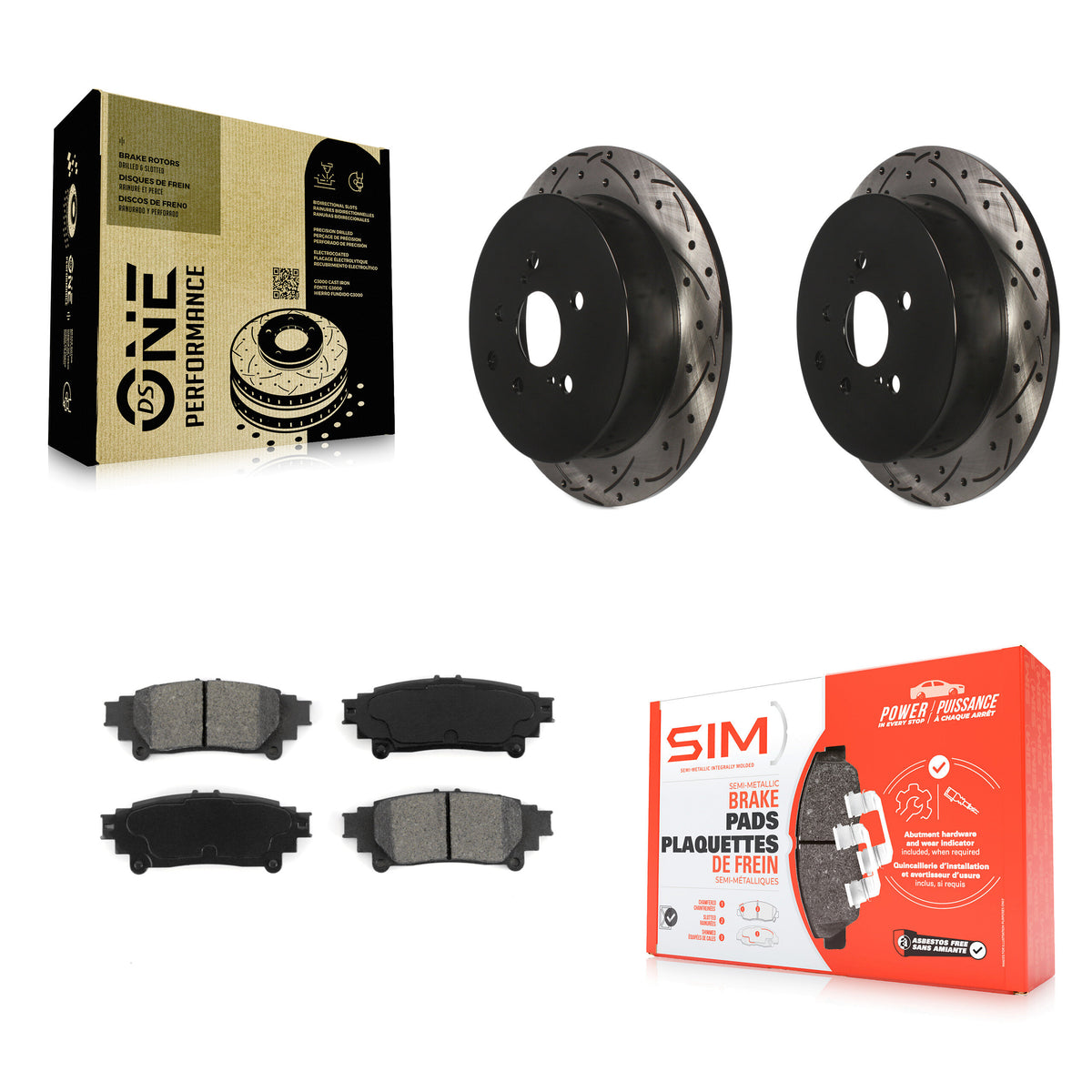Rear Coated Drilled Slotted Disc Brake Rotors And Semi-Metallic Pads Kit For Toyota Highlander Sienna Lexus RX350 RX450h KDS-100465