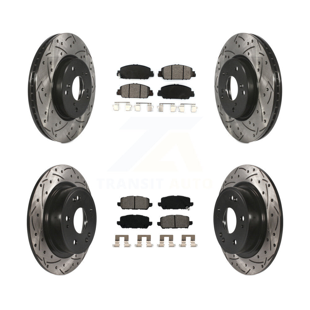 Front Rear Coated Drilled Slotted Disc Brake Rotors And Semi-Metallic Pads Kit For 2016-2022 Honda HR-V KDS-100539