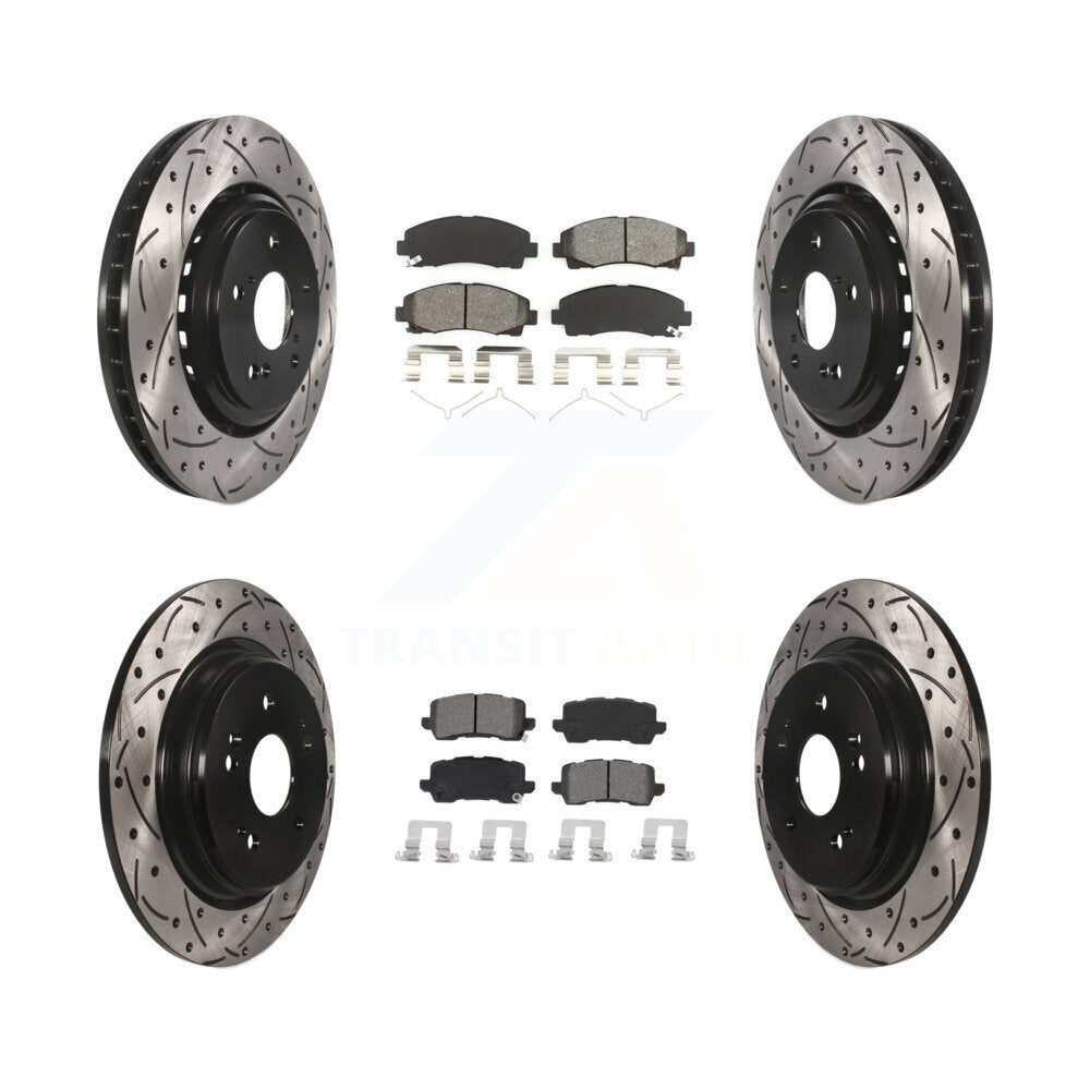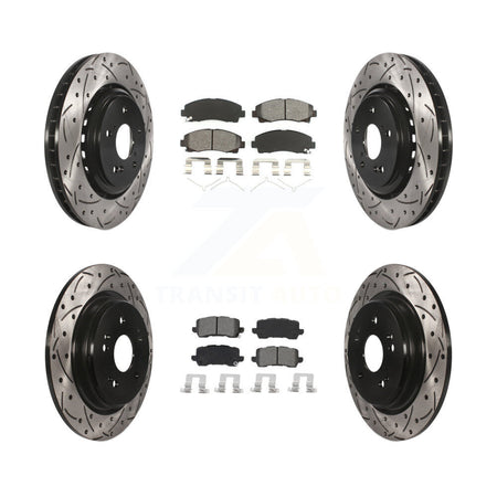 Front Rear Coated Drilled Slotted Disc Brake Rotors And Semi-Metallic Pads Kit For 2015-2020 Acura TLX KDS-100638