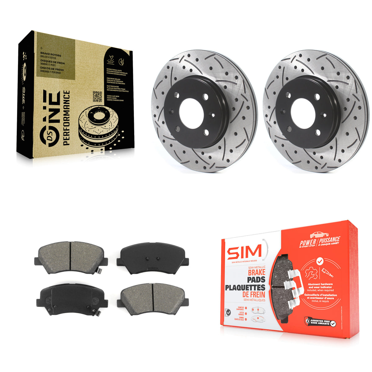 Front Coated Drilled Slotted Disc Brake Rotors And Semi-Metallic Pads Kit For Hyundai Accent Kia Rio KDS-100700