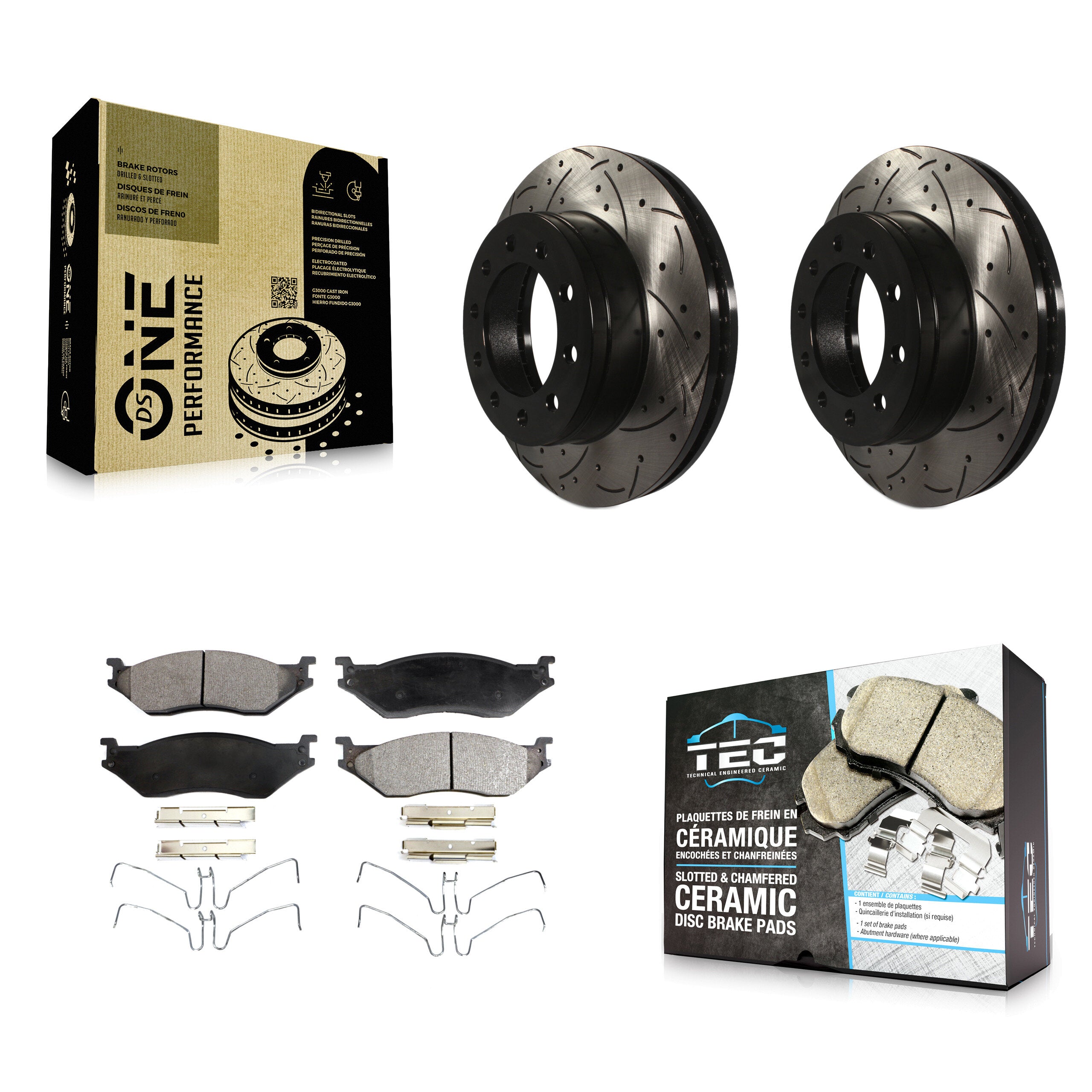 Front Coated Drilled Slotted Disc Brake Rotors And Ceramic Pads Kit For Ford F-450 Super Duty F-550 International CF500 CF600 KDT-100020
