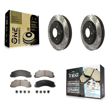Front Coated Drilled Slotted Disc Brake Rotors And Ceramic Pads Kit For Ford F-150 Expedition Lincoln Navigator KDT-100025