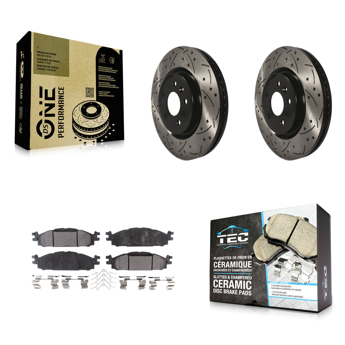 - 2x Front Coated Drilled Slotted DS-One Disc Brake Rotor (Both Sides)