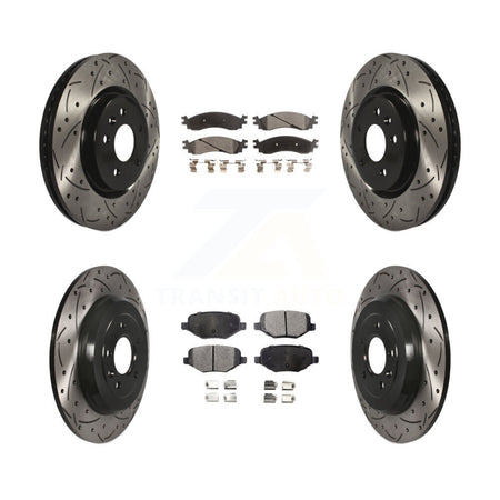 Front Rear Coated Drilled Slotted Disc Brake Rotors And Ceramic Pads Kit For 2010-2012 Ford Taurus SHO KDT-100228