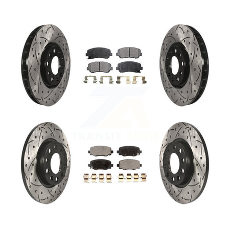 Front Rear Coated Drilled Slotted Disc Brake Rotors And Ceramic Pads Kit For 2015-2017 Chrysler 200 With 305mm Diameter Rotor KDT-100272