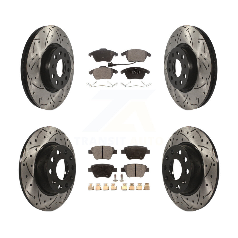 Front Rear Coated Drilled Slotted Disc Brake Rotors And Ceramic Pads Kit For Volkswagen Beetle GTI KDT-100302