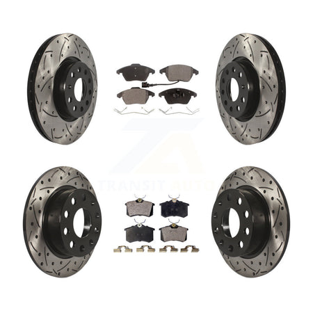 Front Rear Coated Drilled Slotted Disc Brake Rotors And Ceramic Pads Kit For Volkswagen Jetta Beetle KDT-100304
