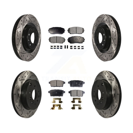 Front Rear Coated Drilled Slotted Disc Brake Rotors And Ceramic Pads Kit For 2007-2015 Mazda CX-9 KDT-100333