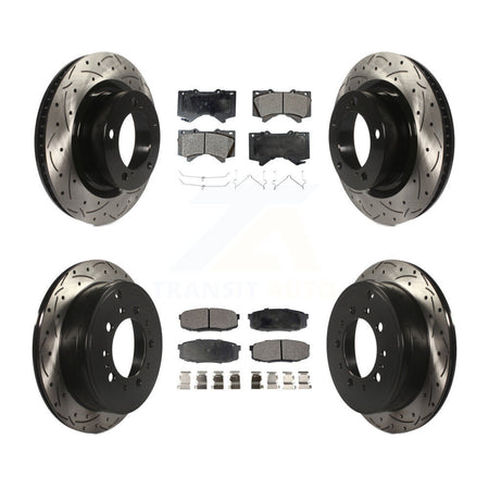 Front Rear Coated Drilled Slotted Disc Brake Rotors And Ceramic Pads Kit For Toyota Tundra Sequoia Lexus LX570 Land Cruiser KDT-100334