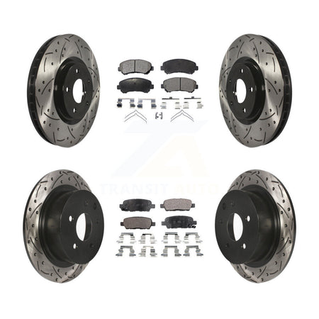 Front Rear Coated Drilled Slotted Disc Brake Rotors And Ceramic Pads Kit For 2007-2012 Nissan Sentra SE-R Spec V KDT-100346
