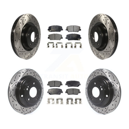 Front Rear Coated Drilled Slotted Disc Brake Rotors And Ceramic Pads Kit For Hyundai Genesis Coupe KDT-100364