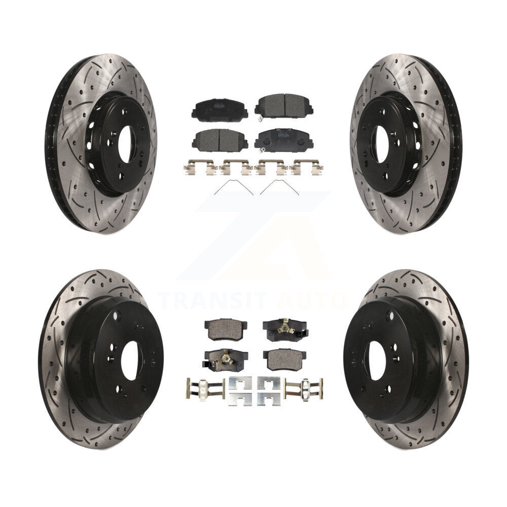 Front Rear Coated Drilled Slotted Disc Brake Rotors And Ceramic Pads Kit For 2013-2018 Acura RDX KDT-100393