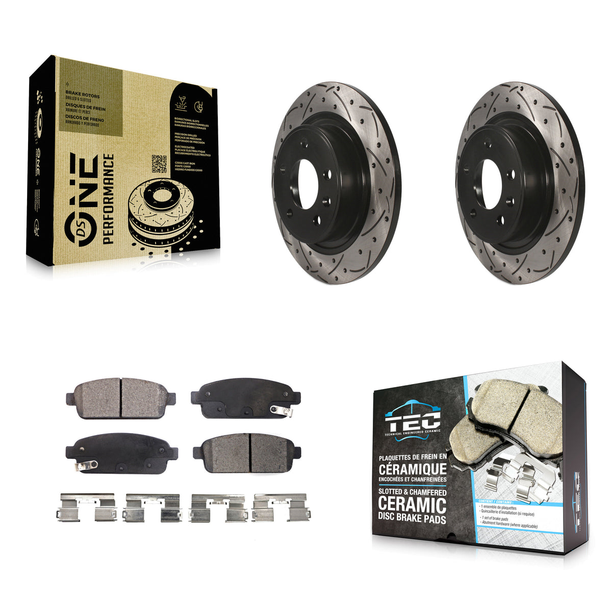Rear Coated Drilled Slotted Disc Brake Rotors And Ceramic Pads Kit For Chevrolet Cruze Buick Verano Volt Cascada Cadillac ELR Orlando KDT-100444