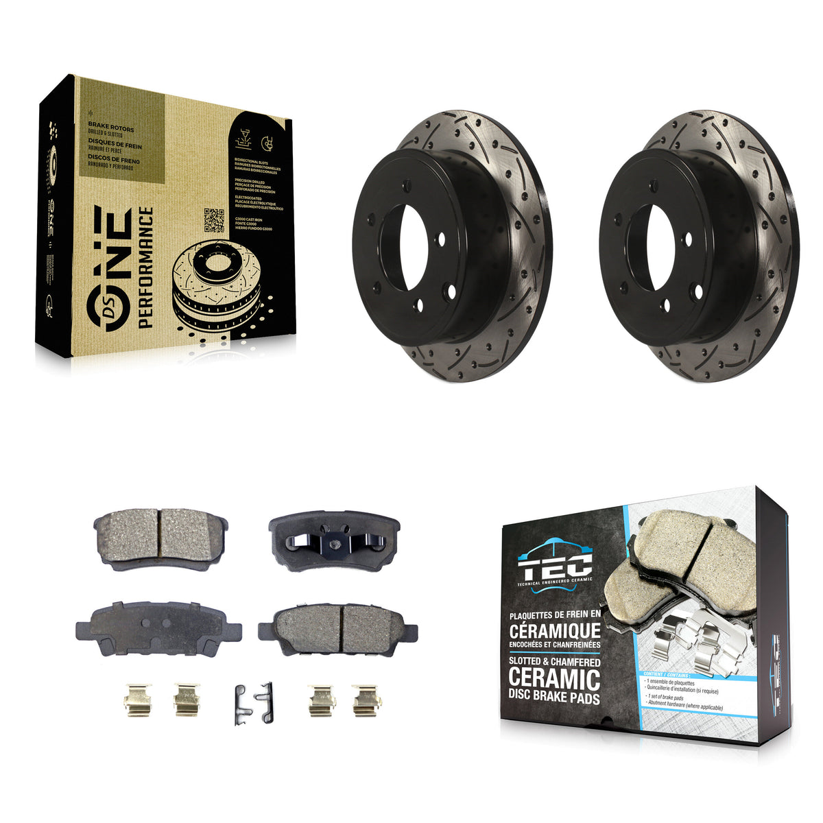 Rear Coated Drilled Slotted Disc Brake Rotors And Ceramic Pads Kit For Jeep Dodge Patriot Chrysler Compass Avenger 200 Caliber Sebring Mitsubishi Lancer KDT-100476
