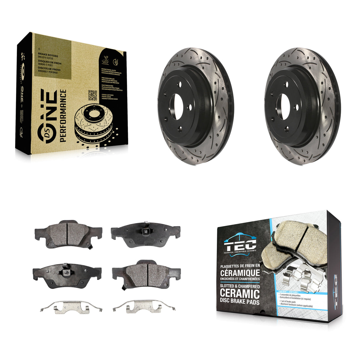- 2x Rear Coated Drilled Slotted DS-One Disc Brake Rotor (Both Sides)