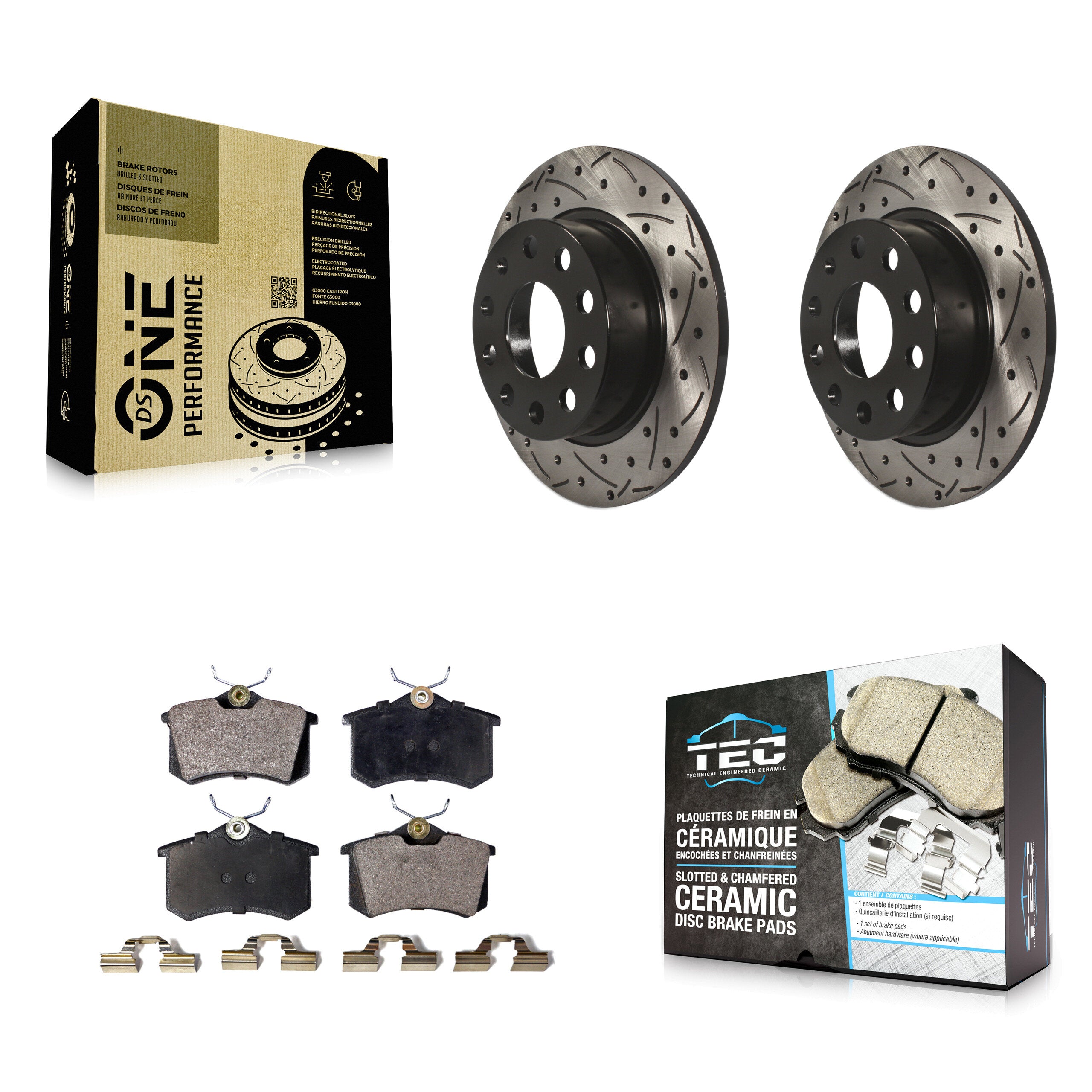 Rear Coated Drilled Slotted Disc Brake Rotors And Ceramic Pads Kit For Volkswagen Jetta Beetle Golf SportWagen KDT-100536