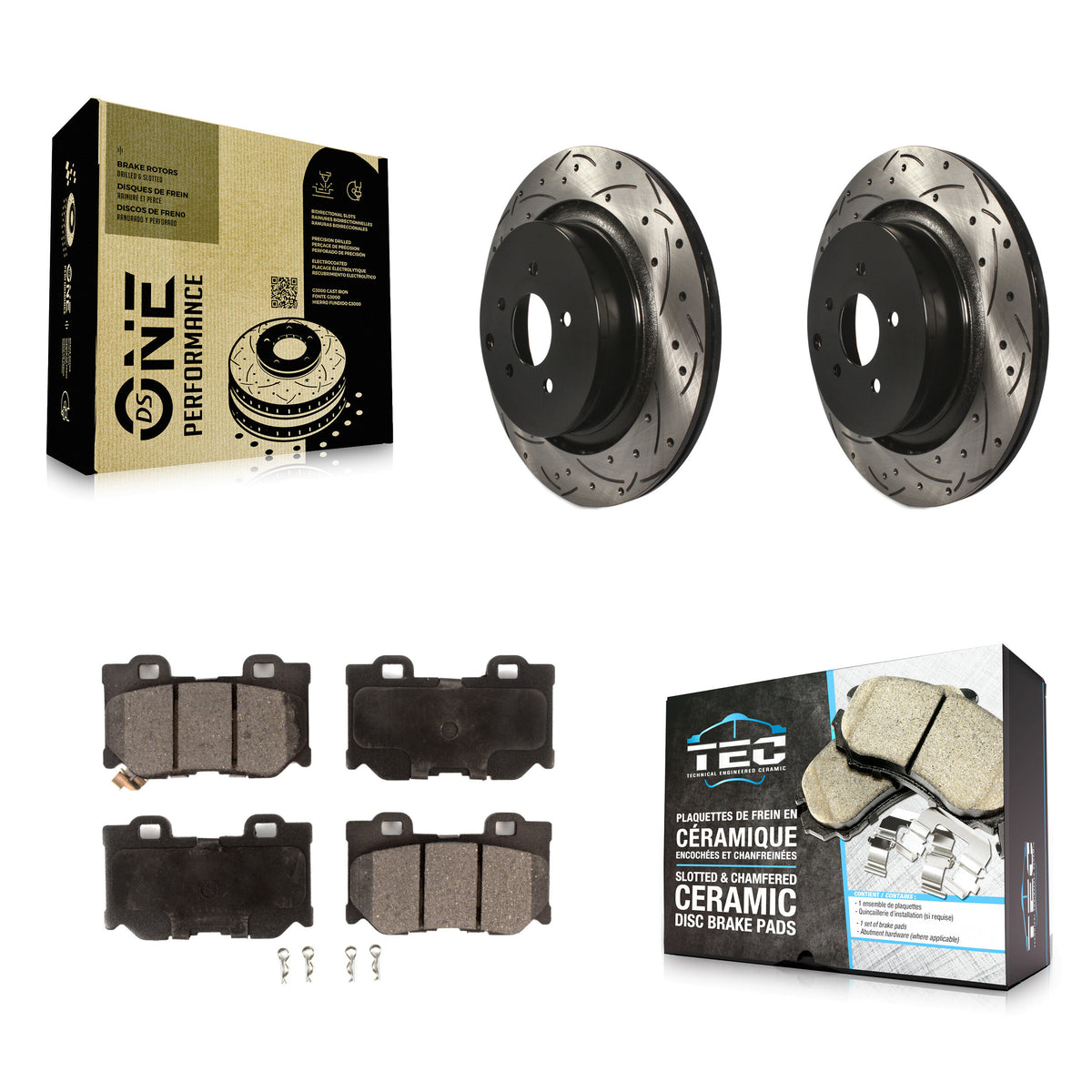 - 2x Rear Coated Drilled Slotted DS-One Disc Brake Rotor (Both Sides)