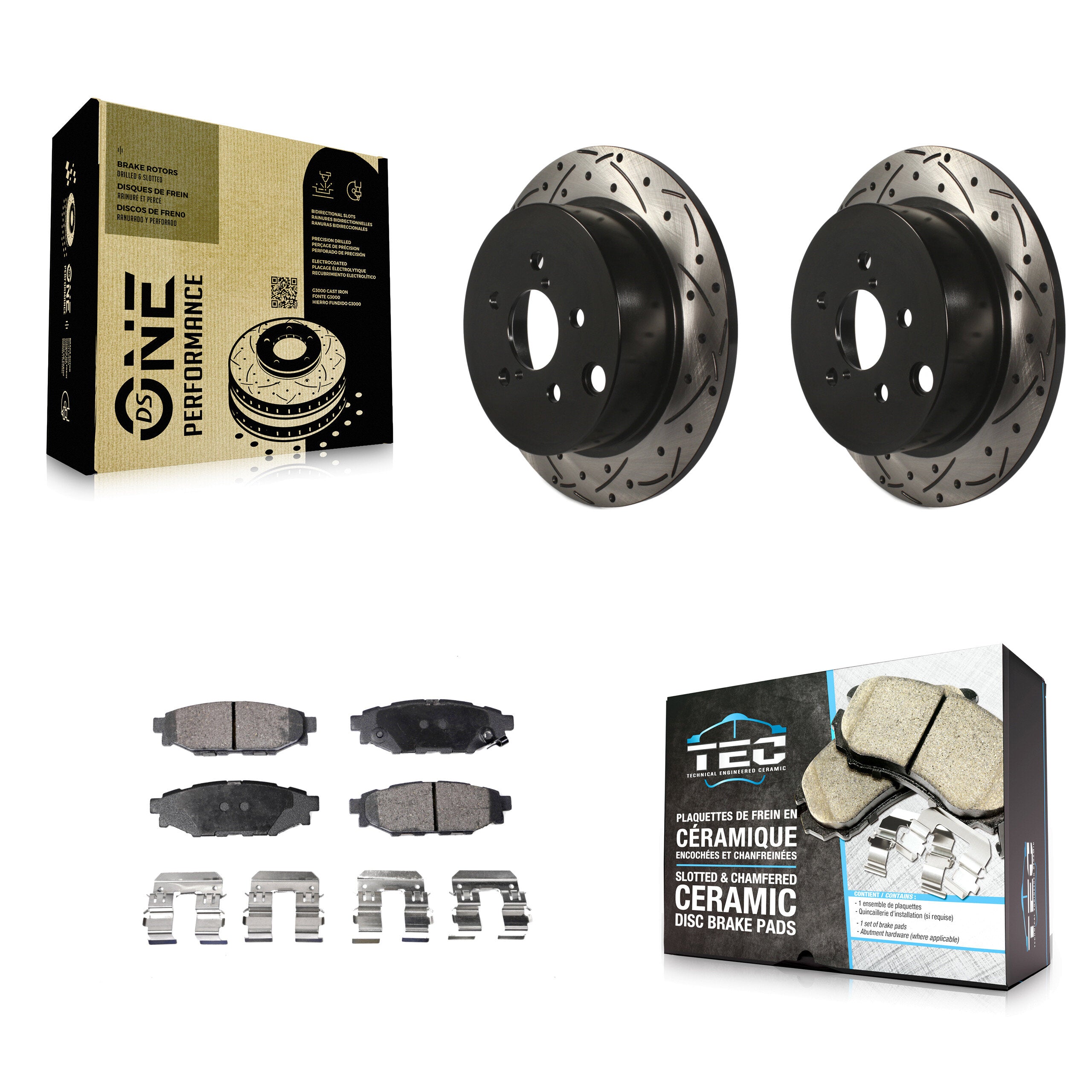 - 2x Rear Coated Drilled Slotted DS-One Disc Brake Rotor (Both Sides)