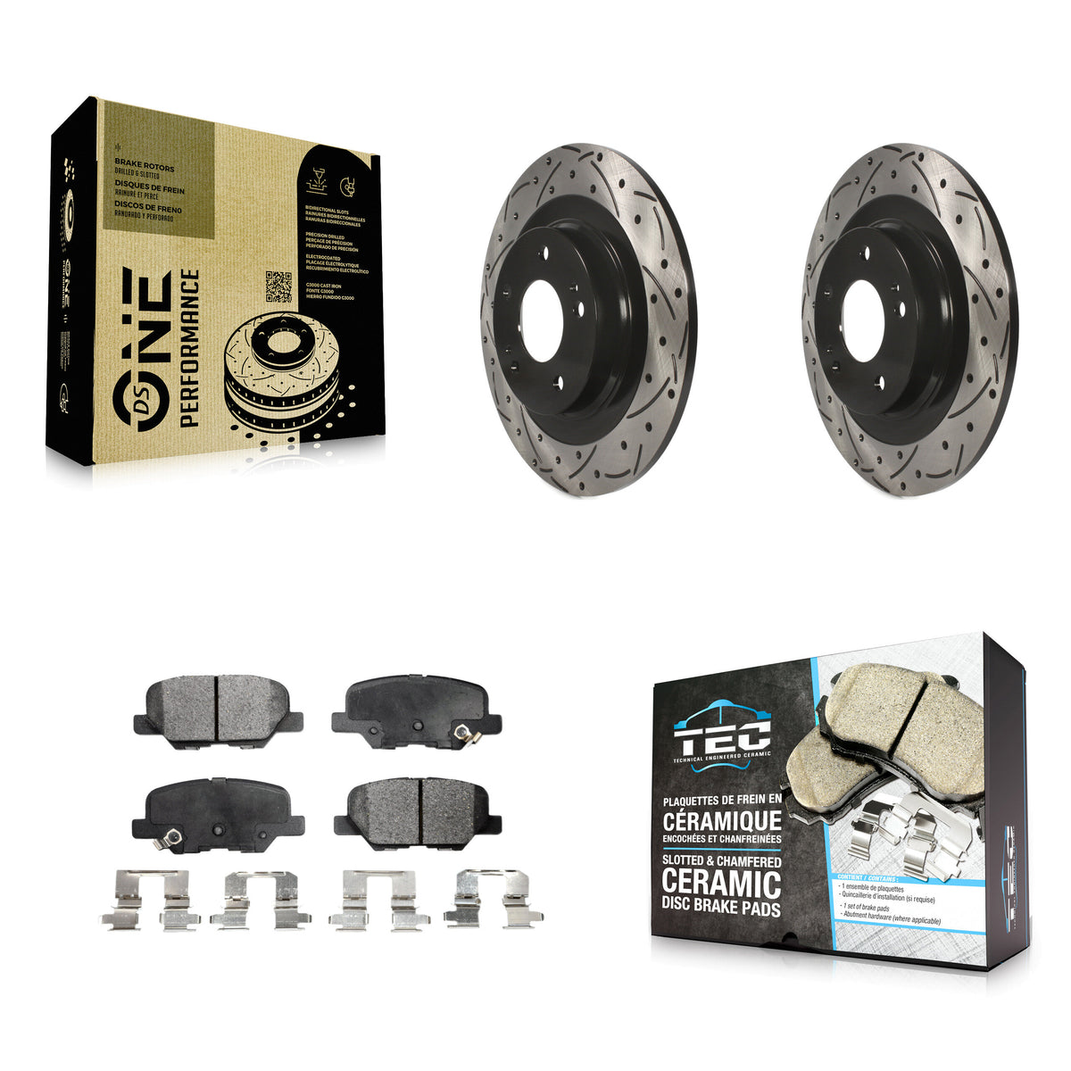 - 2x Rear Coated Drilled Slotted DS-One Disc Brake Rotor (Both Sides)