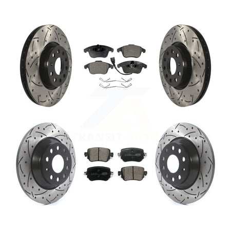 Front Rear Coated Drilled Slotted Disc Brake Rotors And Ceramic Pads Kit For 2016-2018 Audi Q3 Quattro KDT-100592