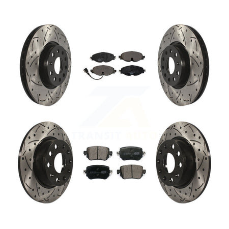 Front Rear Coated Drilled Slotted Disc Brake Rotors And Ceramic Pads Kit For Volkswagen GTI Golf Alltrack Passat KDT-100595