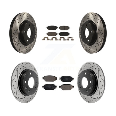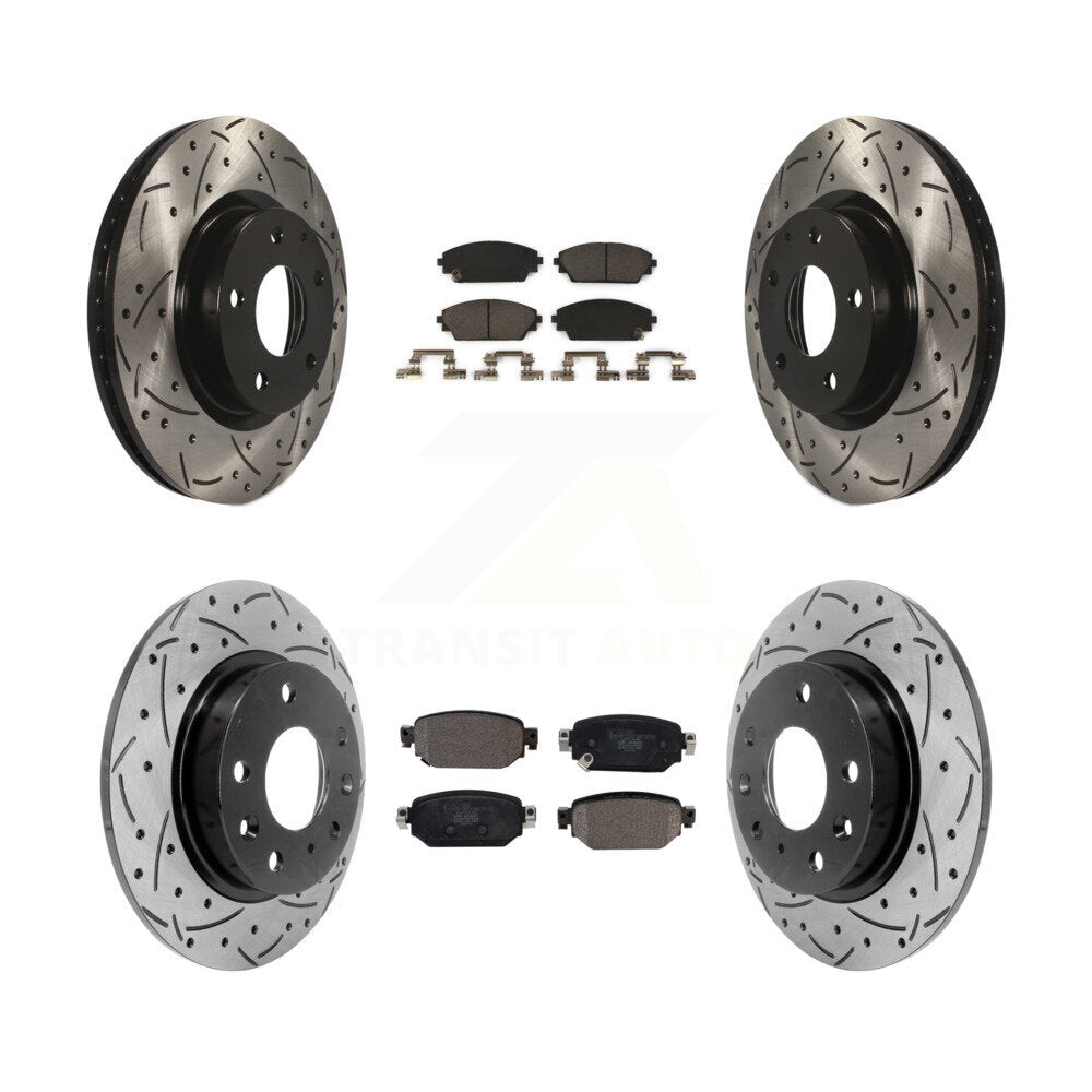 Front Rear Coated Drilled Slotted Disc Brake Rotors And Ceramic Pads Kit For 2019-2021 Mazda CX-3 AWD KDT-100609