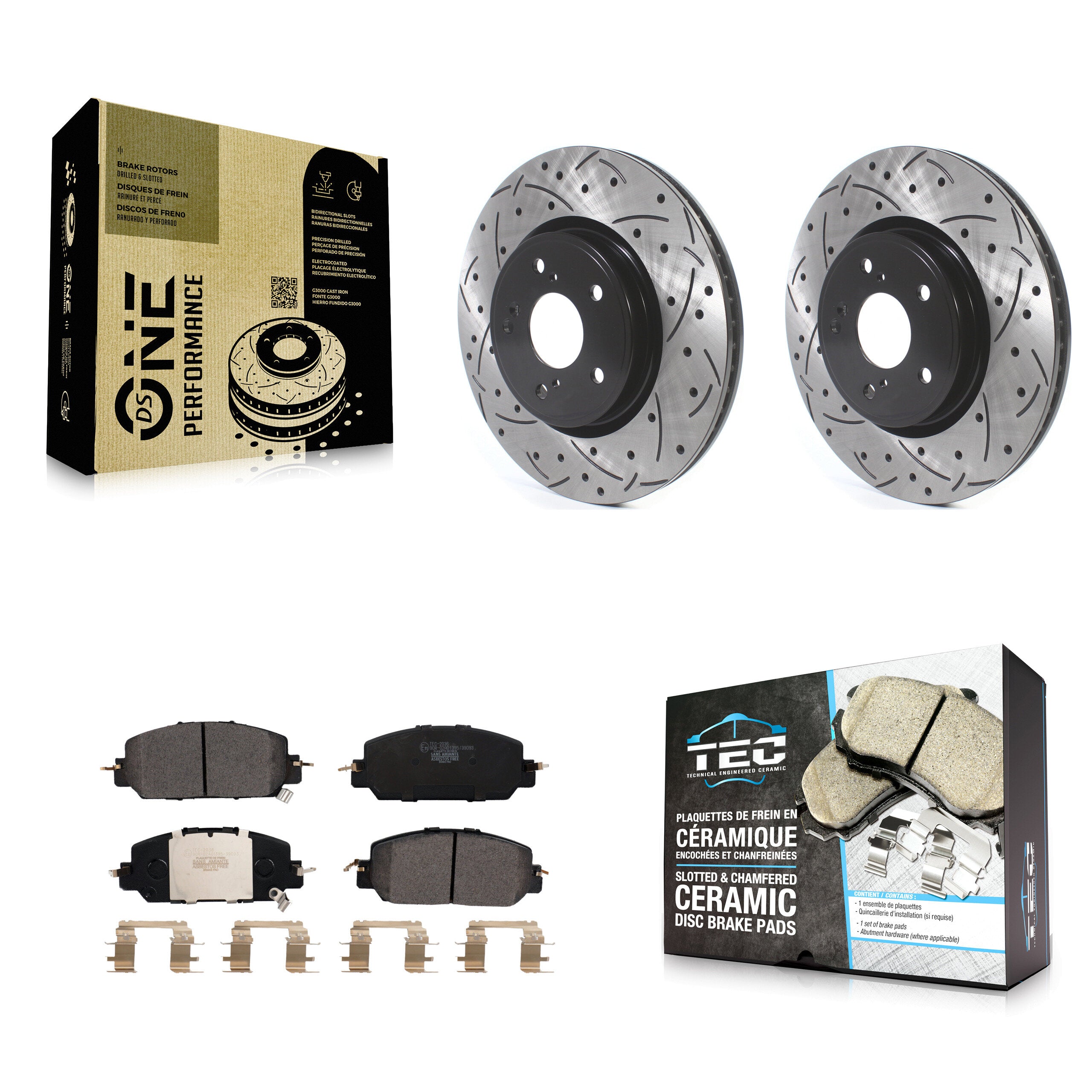- 2x Front Coated Drilled Slotted DS-One Disc Brake Rotor (Both Sides)