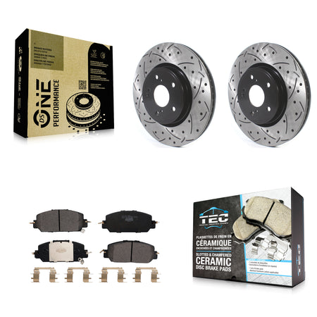Front Coated Drilled Slotted Disc Brake Rotors And Ceramic Pads Kit For Honda CR-V KDT-100653