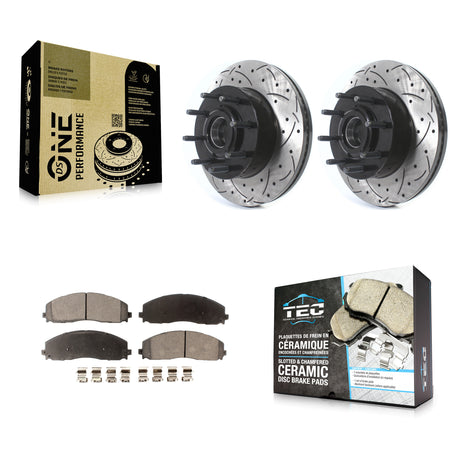 Front Coated Drilled Slotted Disc Brake Rotors Hub Assembly And Ceramic Pads Kit For Ford F-250 Super Duty F-350 KDT-100714
