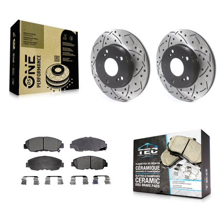 Front Coated Drilled Slotted Disc Brake Rotors And Ceramic Pads Kit For Honda Civic KDT-100771