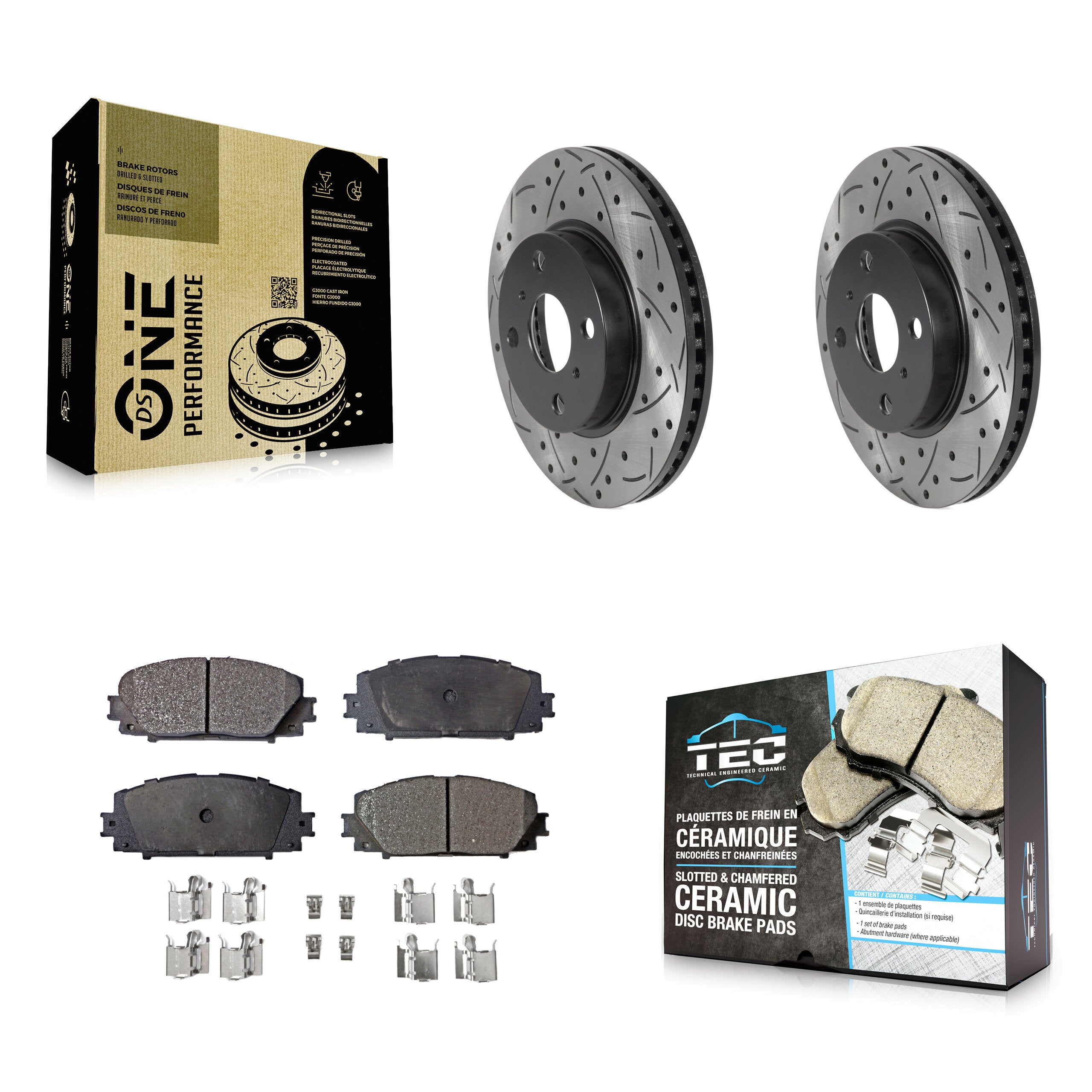 Front Coated Drilled Slotted Disc Brake Rotors And Ceramic Pads Kit For Toyota Yaris Prius C Scion iQ KDT-100780