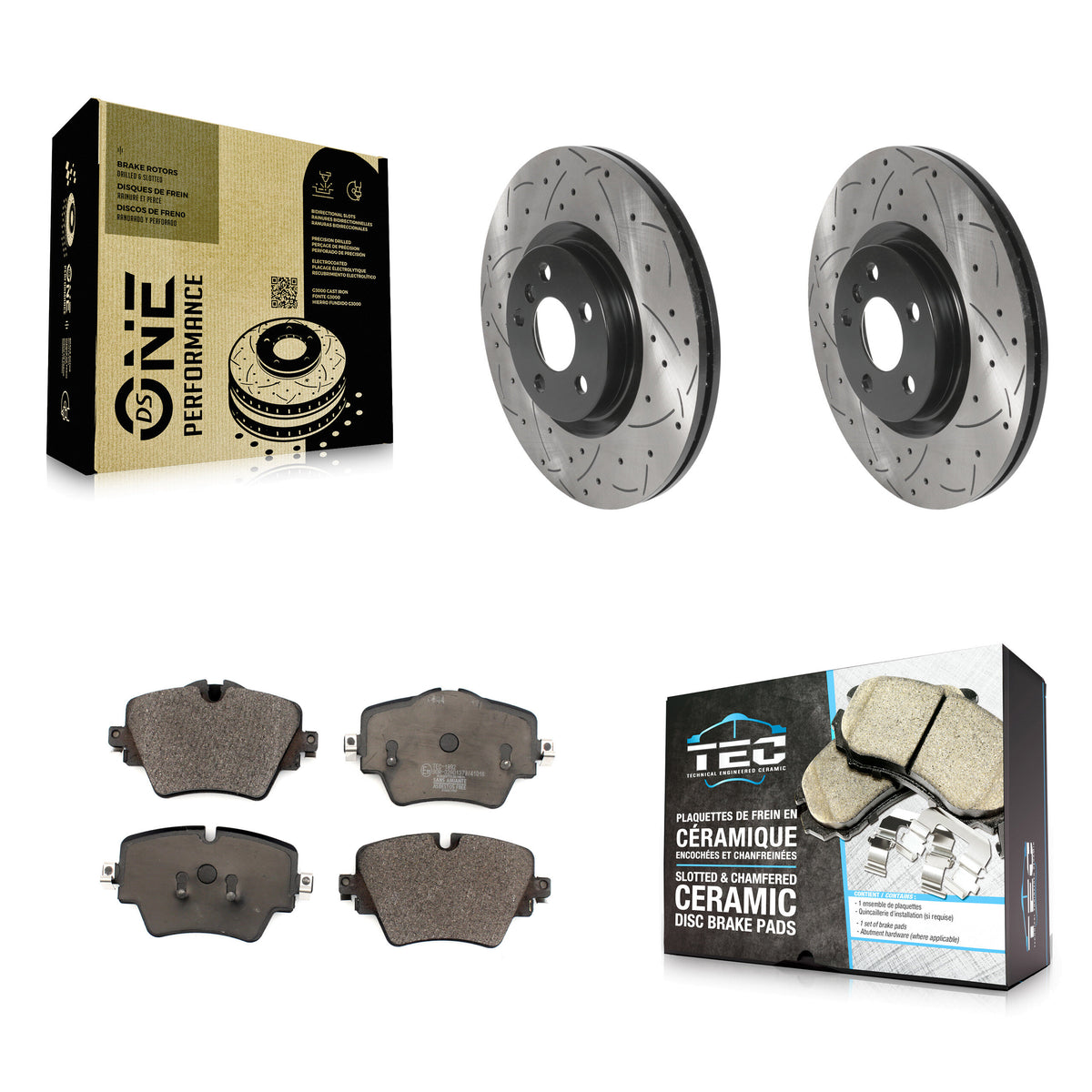 Front Coated Drilled Slotted Disc Brake Rotors And Ceramic Pads Kit For BMW X1 Mini Cooper Countryman X2 228i xDrive Gran Coupe KDT-100807