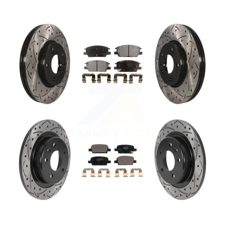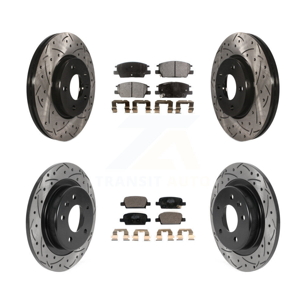 Front Rear Coated Drilled Slotted Disc Brake Rotors And Ceramic Pads Kit For 2016-2020 Chevrolet Malibu With Manual Parking KDT-100812