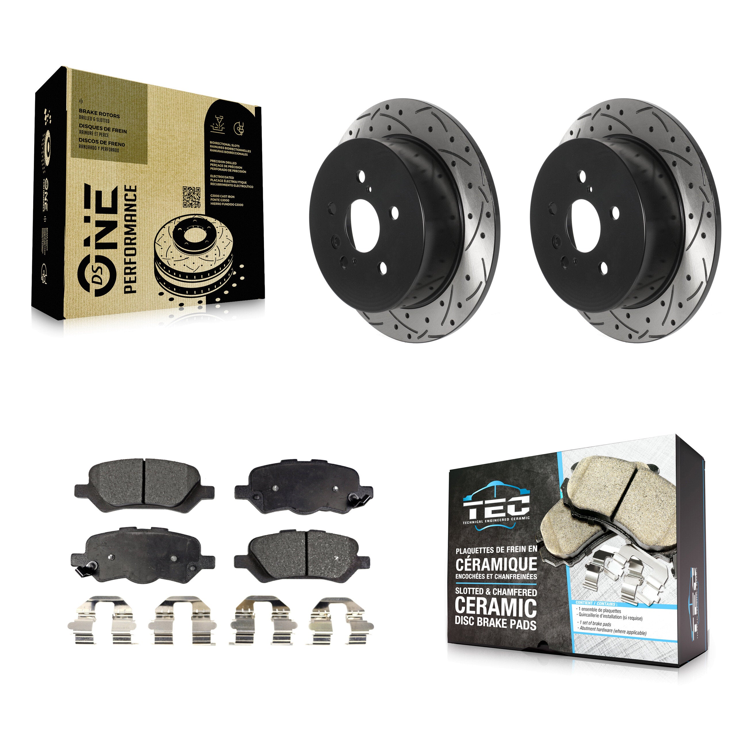 - 2x Rear Coated Drilled Slotted DS-One Disc Brake Rotor (Both Sides)