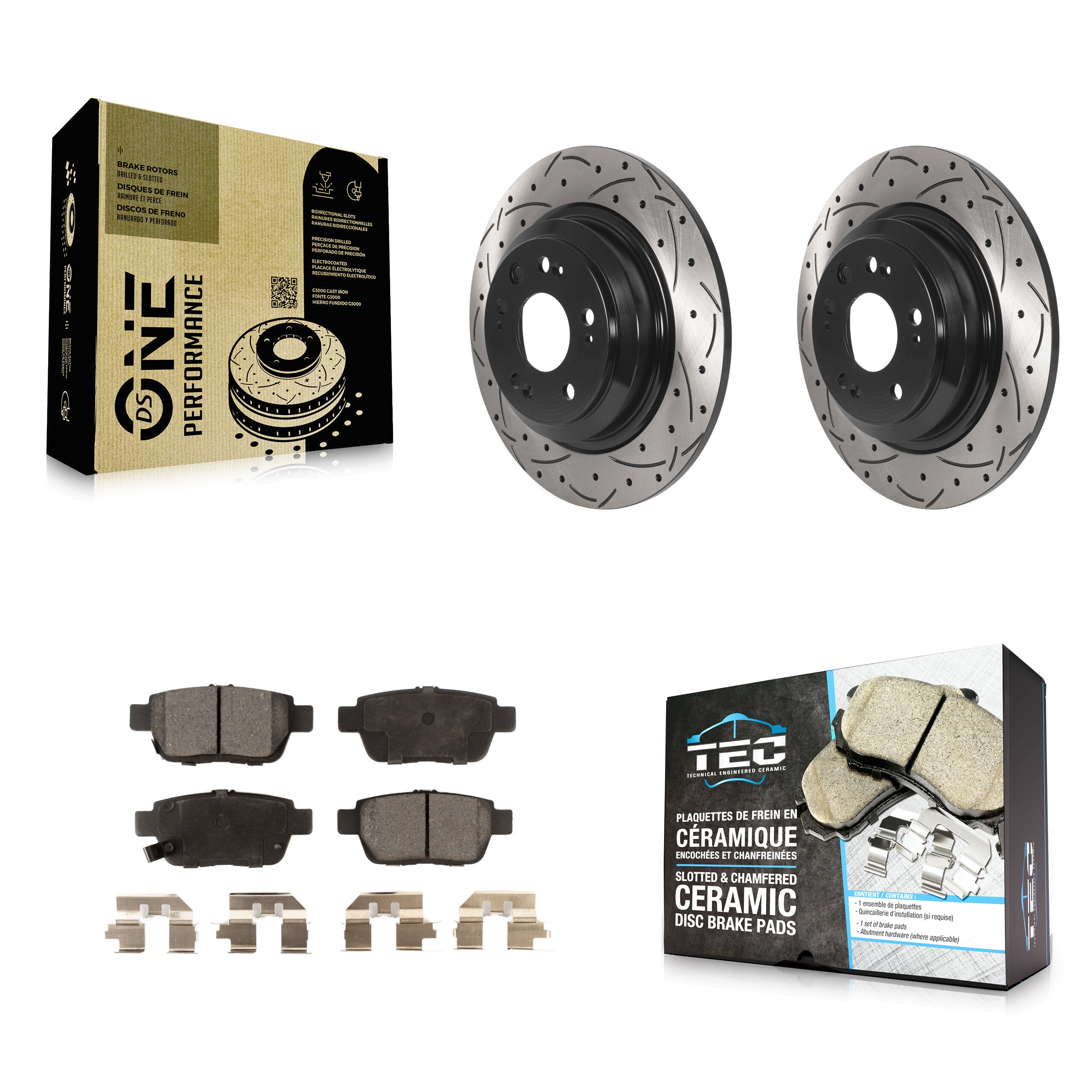 Rear Coated Drilled Slotted Disc Brake Rotors And Ceramic Pads Kit For 2009-2014 Acura TL KDT-100938
