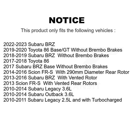 Rear Coated Drilled Slotted Disc Brake Rotors And Ceramic Pads Kit For Subaru Outback Legacy Scion FR-S BRZ Toyota 86 KDT-100939