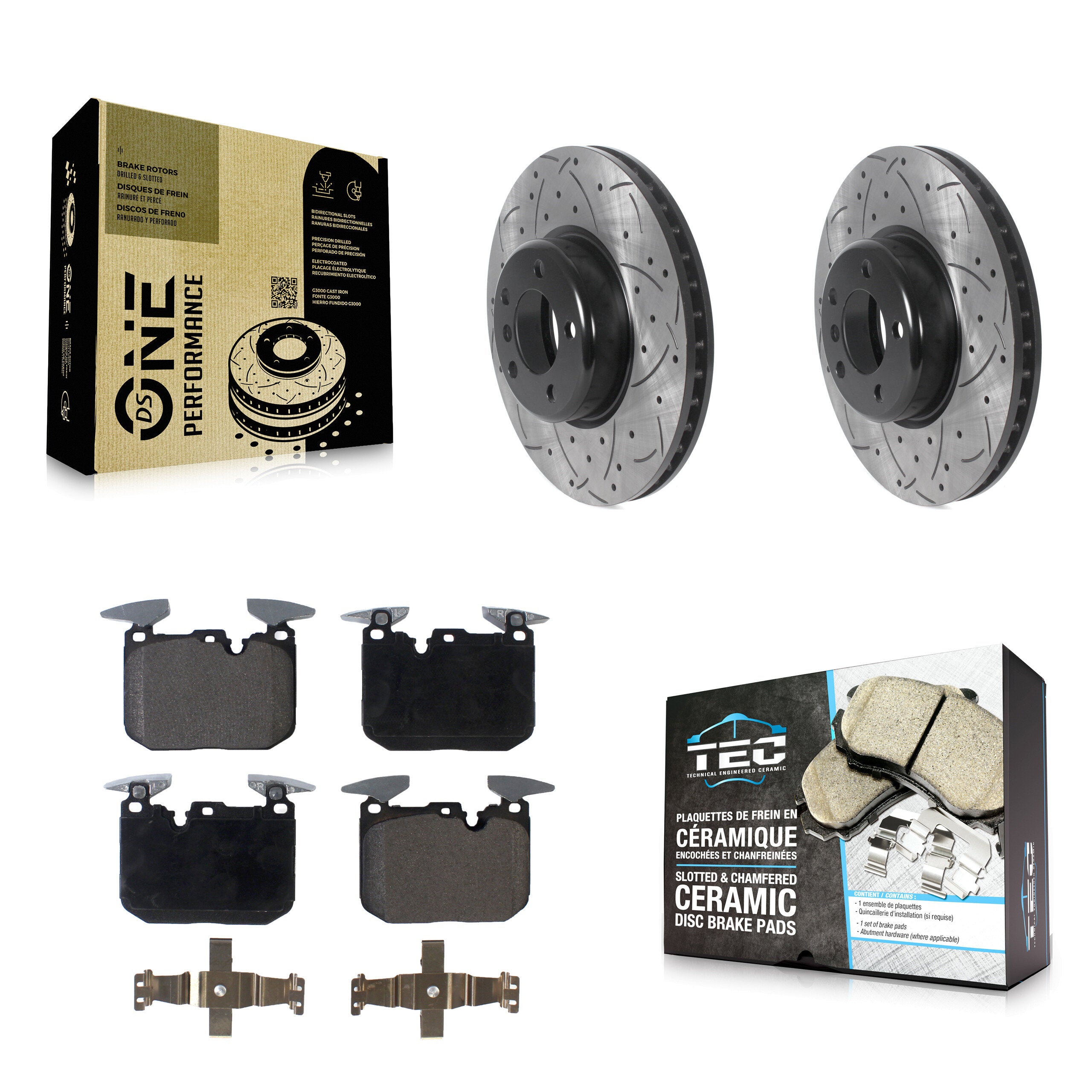 Front Coated Drilled Slotted Disc Brake Rotors And Ceramic Pads Kit For BMW 328i 428i 330i xDrive 335i Gran Coupe 228i 440i 340i M240i 435i ActiveHybrid 3 GT KDT-100987