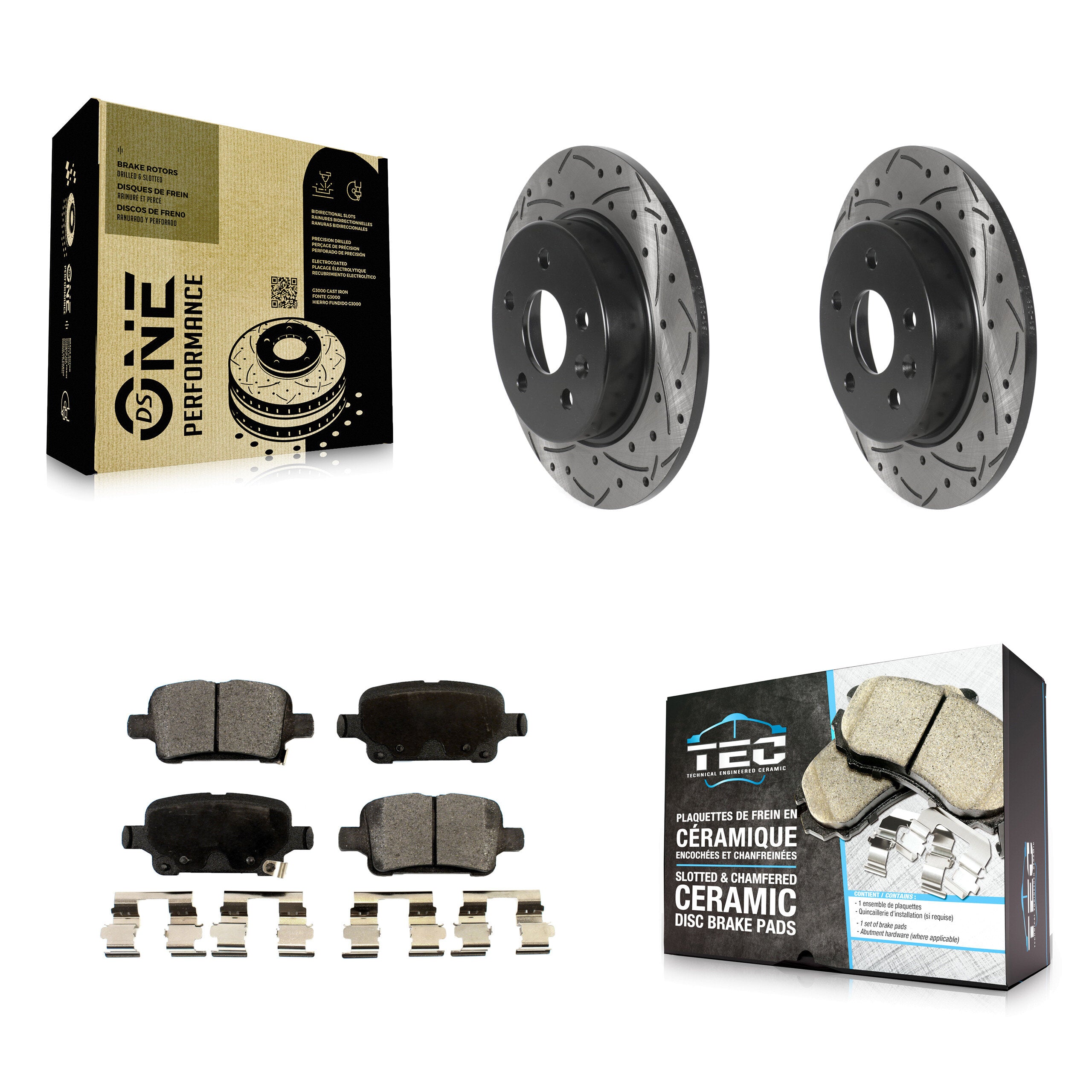 - 2x Rear Coated Drilled Slotted DS-One Disc Brake Rotor (Both Sides)
