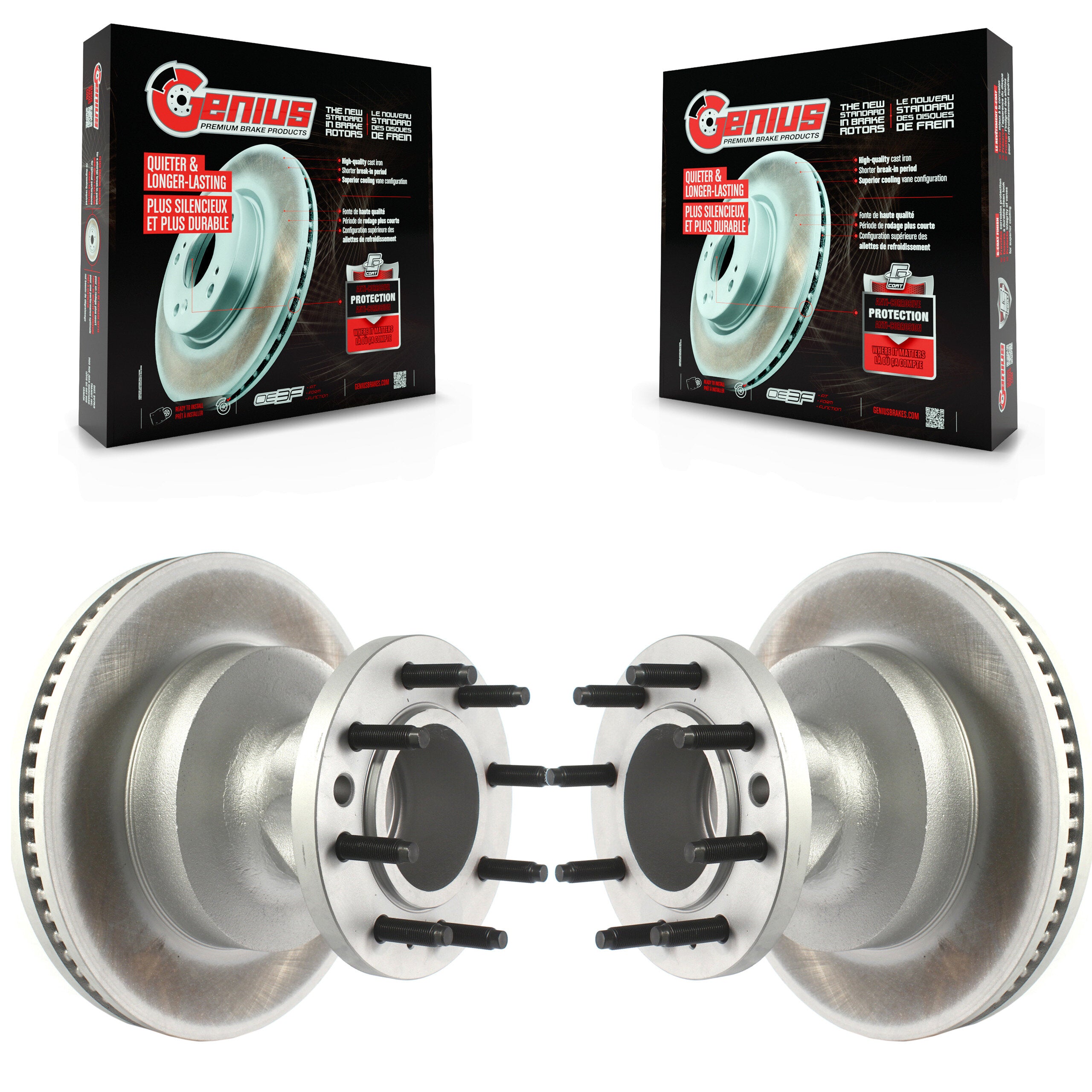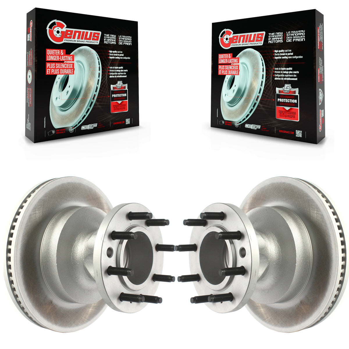 - 2x Front Coated Genius Disc Brake Rotor and Hub Assembly (Both Sides)