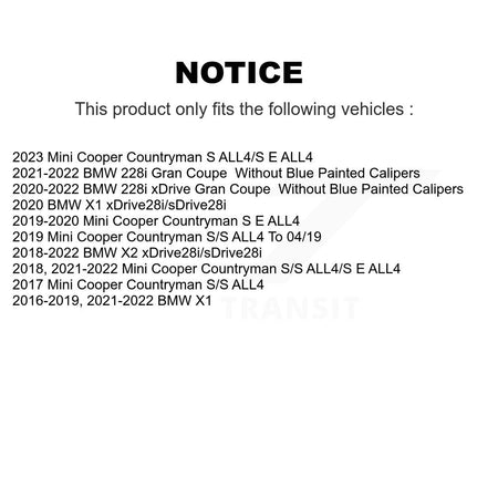 Front Coated Disc Brake Rotors And Ceramic Pads Kit For BMW X1 Mini Cooper Countryman X2 228i xDrive Gran Coupe KGC-100168